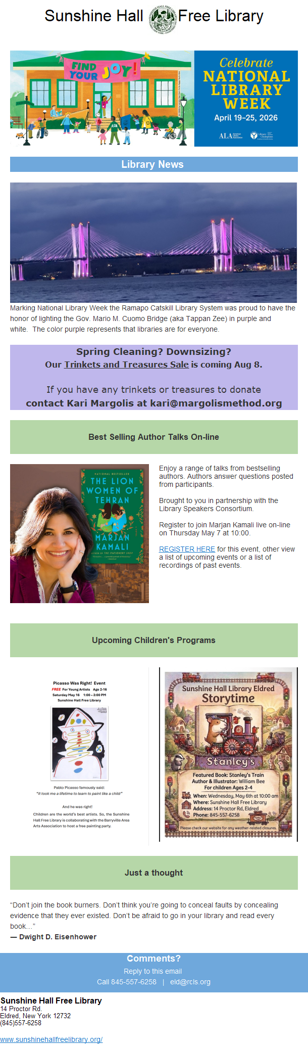 COMING SOON! Sunshine Hall Free Library TOWN’S TREASURES & TRINKETS SALE – August 8th, 2026!