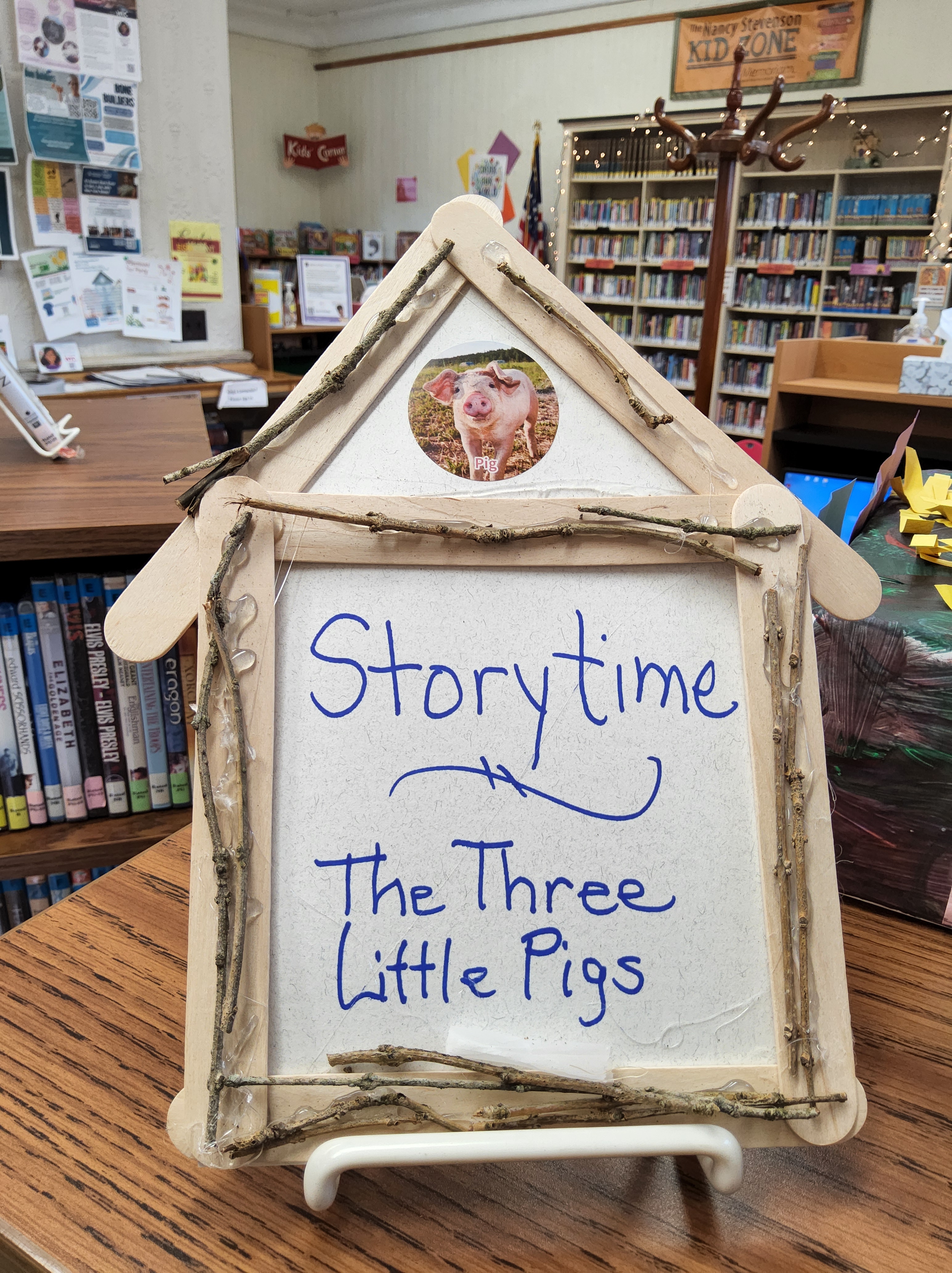 Stop by to check out your favorite version of The Three Little Pigs or make a craft!